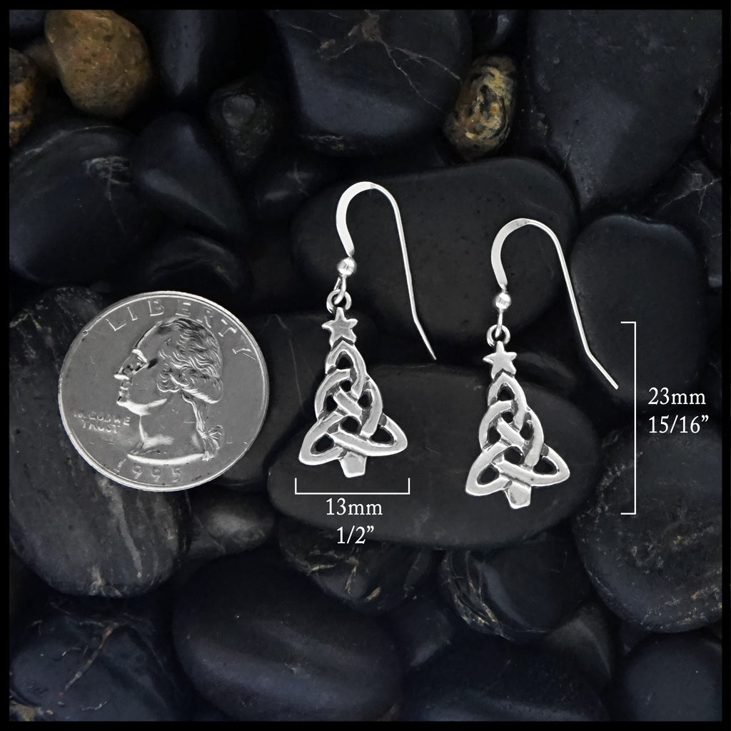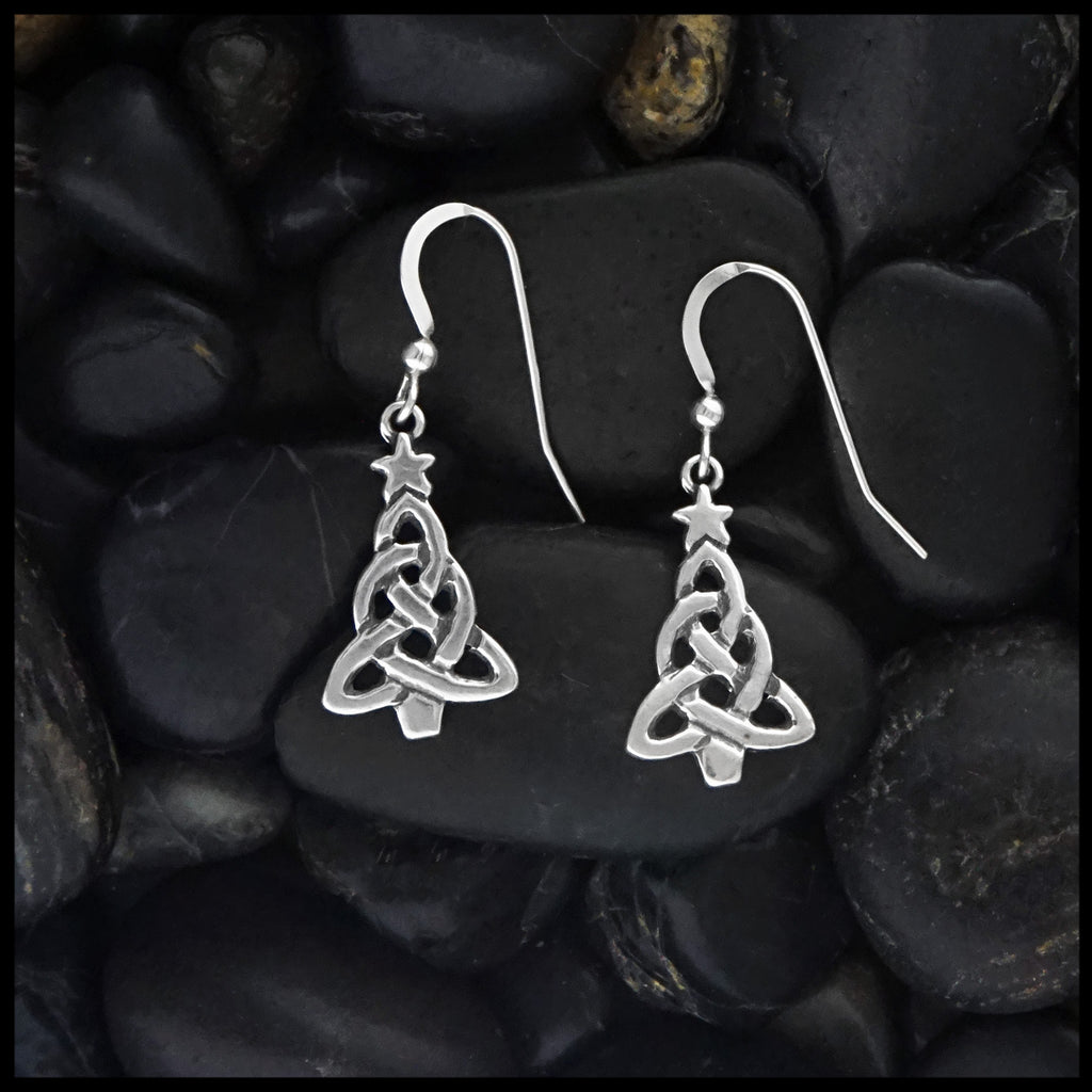 Sterling Silver Christmas Tree Drop Earrings with a never-ending Celtic Knot for the branches.