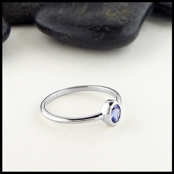 Simple and sweet ring in 14K White Gold set with a 0.30ct oval Ceylon sapphire.