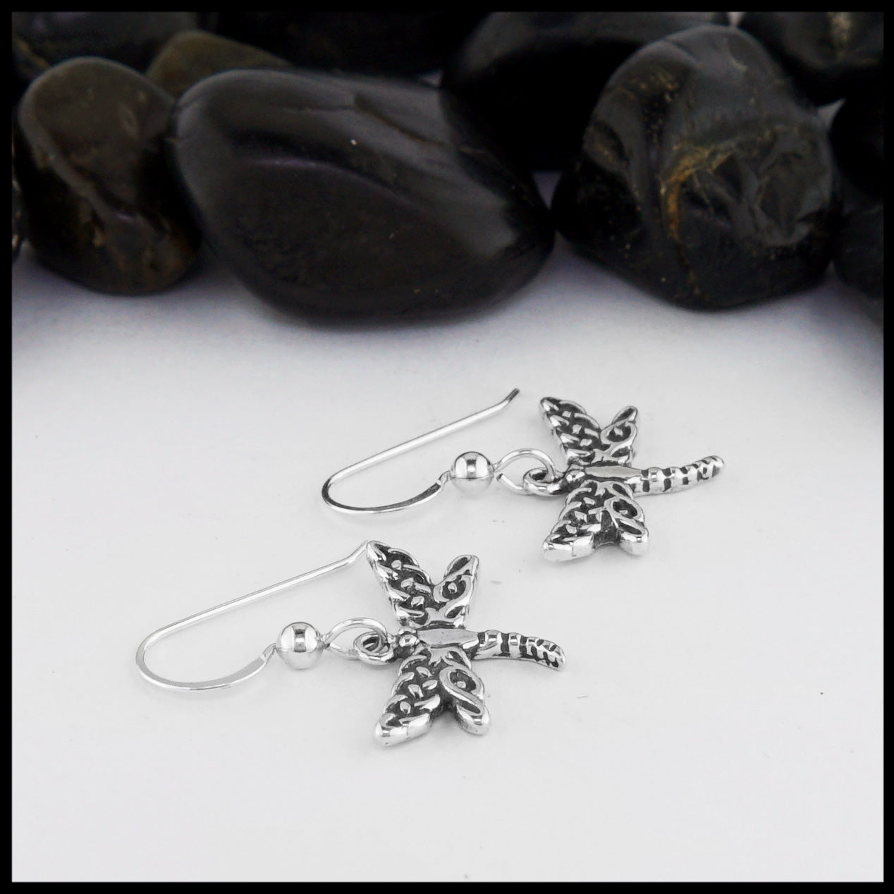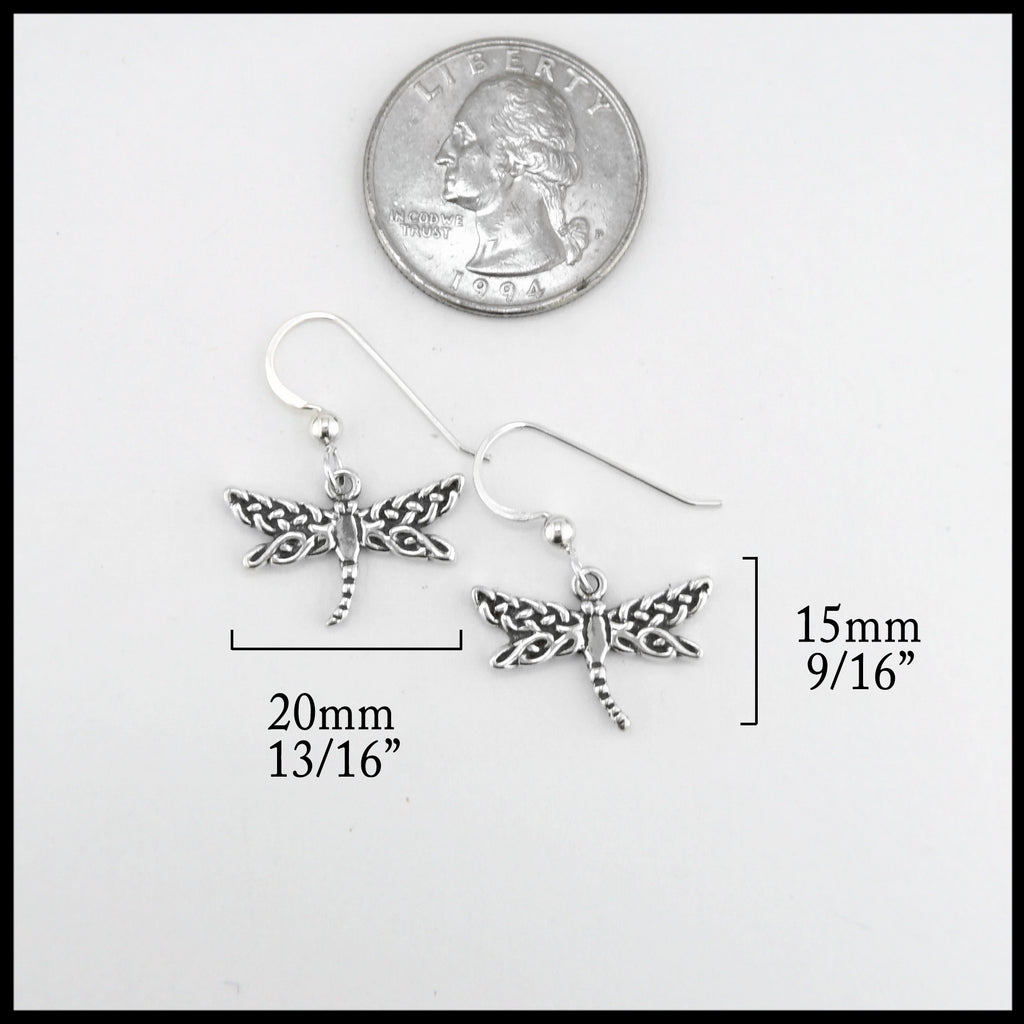 Small Celtic Knot dragonfly earrings in sterling silver.