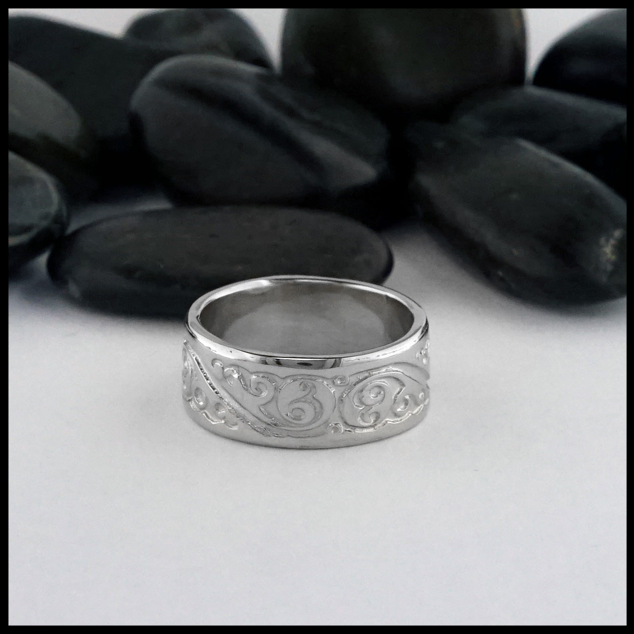 The Dal Riada ring carries repeating spirals and celtic knots around the band to create...