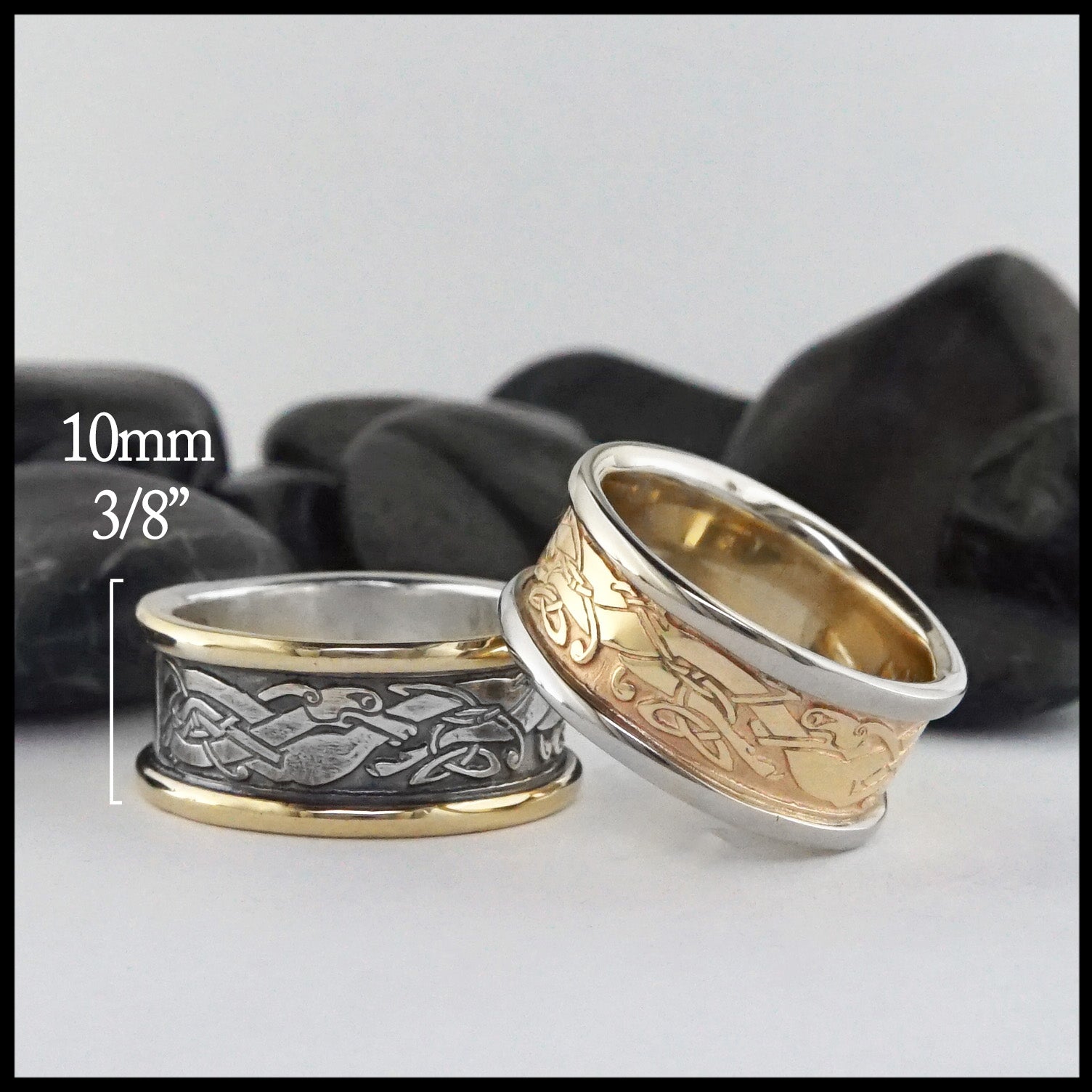 The Dal Riada ring in Sterling Silver carries repeating spirals and celtic knots around the...