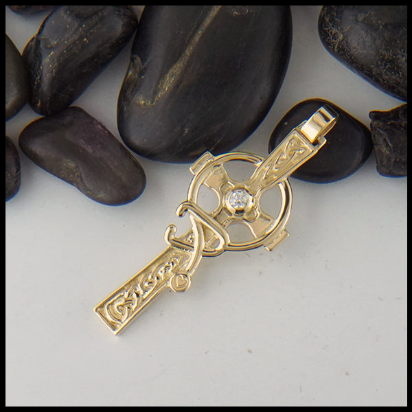 The Trinity Celtic Cross Pendant, shown here in 14K yellow gold, is an original design...
