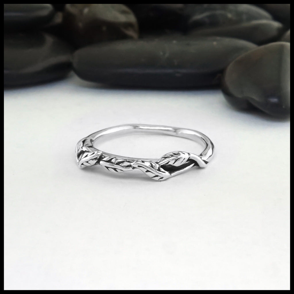 Pictured is a stunning Leaf and Vine ring in sterling silver.