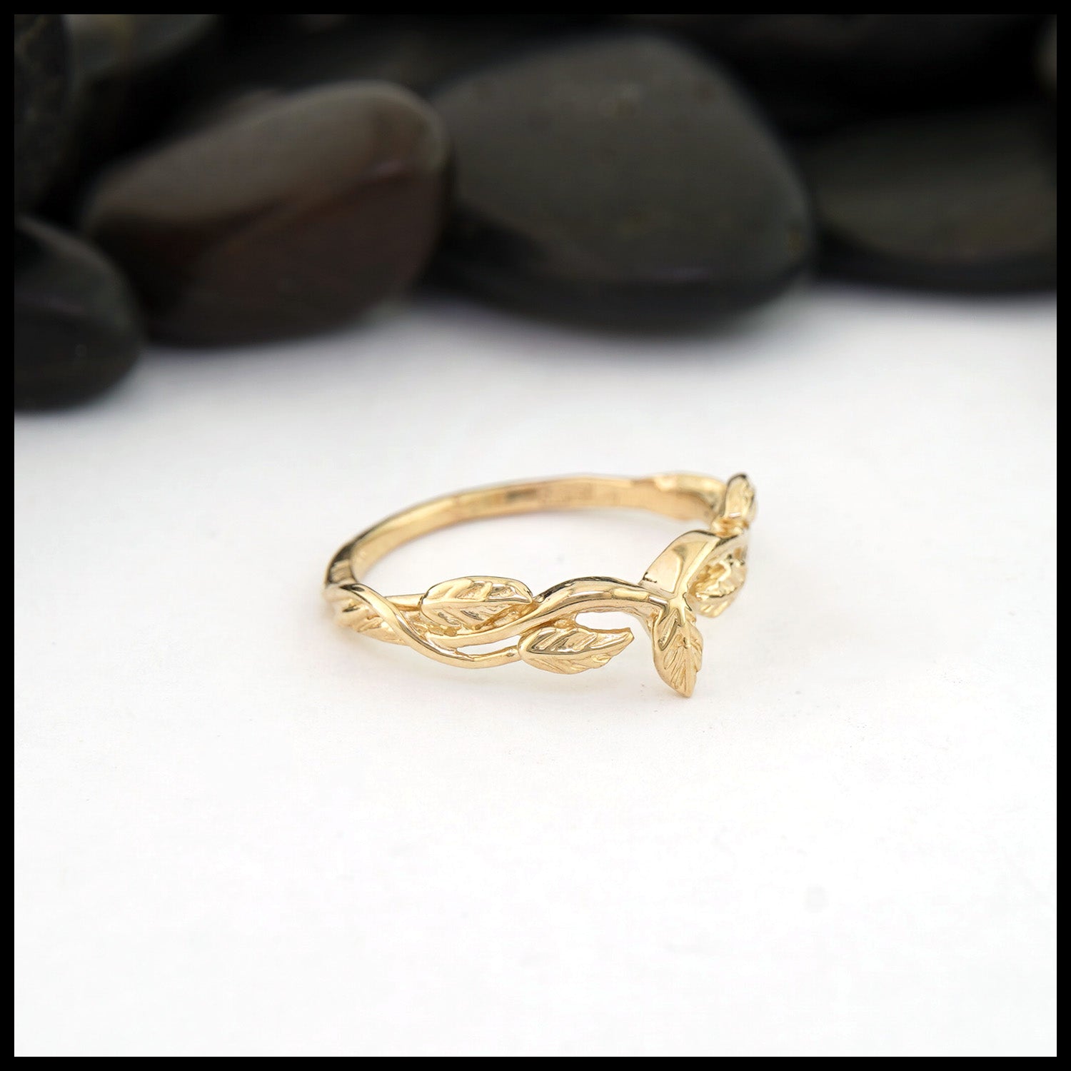 Leaf and Vine Wedding Set in 14K Yellow Gold