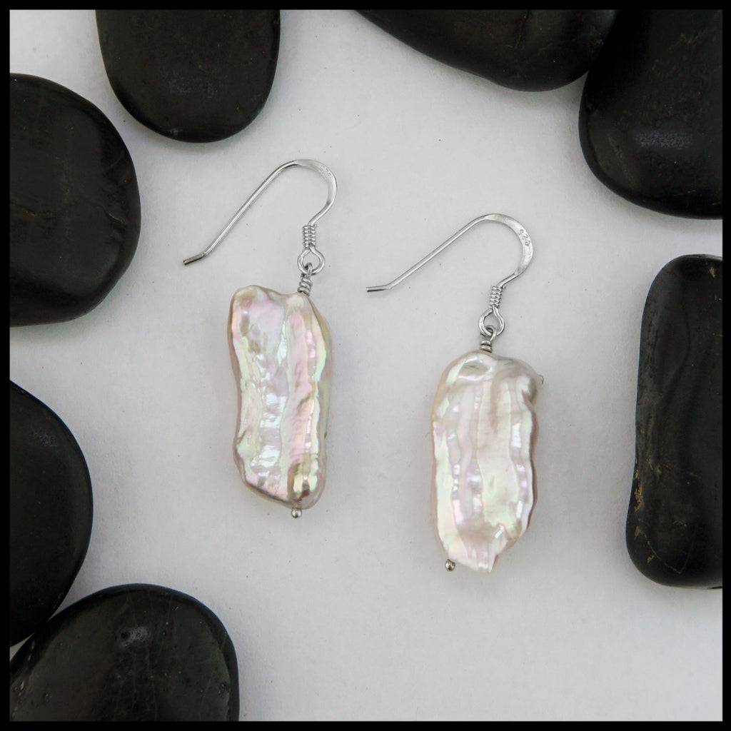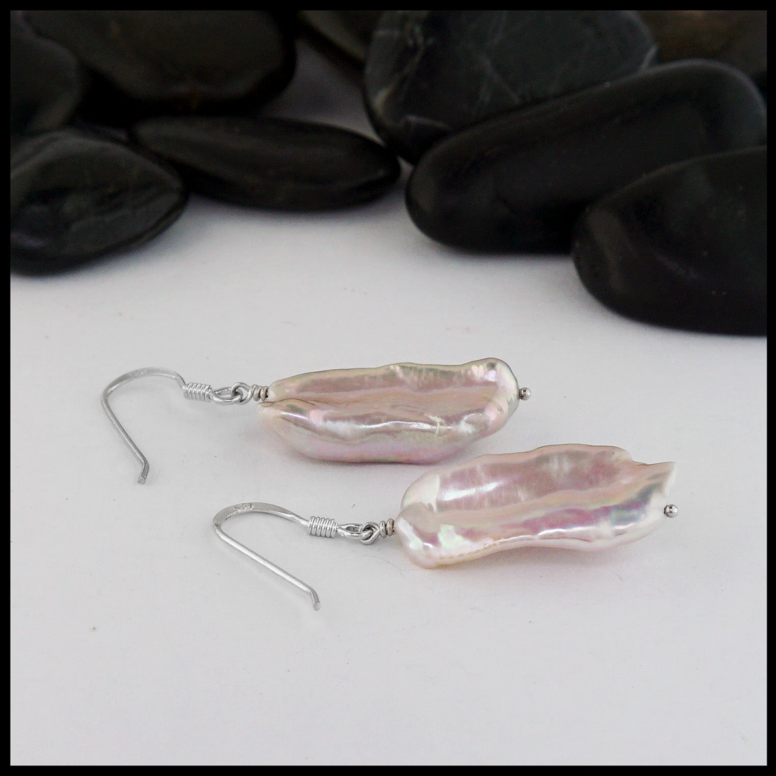 Earrings in Sterling Silver set with light pink Biwa Pearls