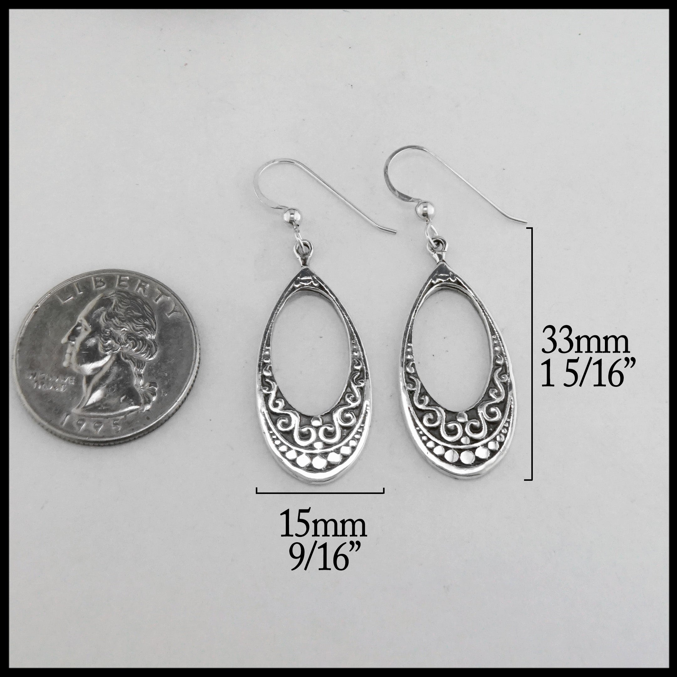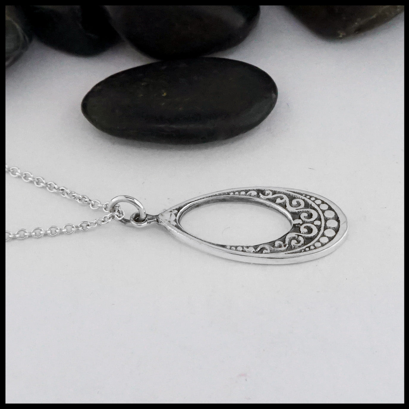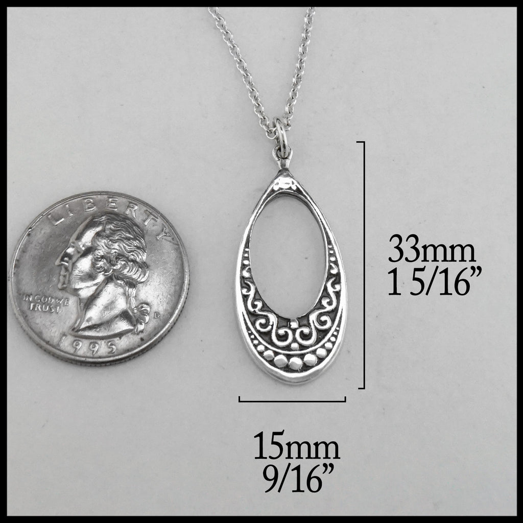 Sterling Silver teardrop pendant and earring set with Celtic knotwork designs. Pendant comes on an 18" Sterling Silver Cable Chain.