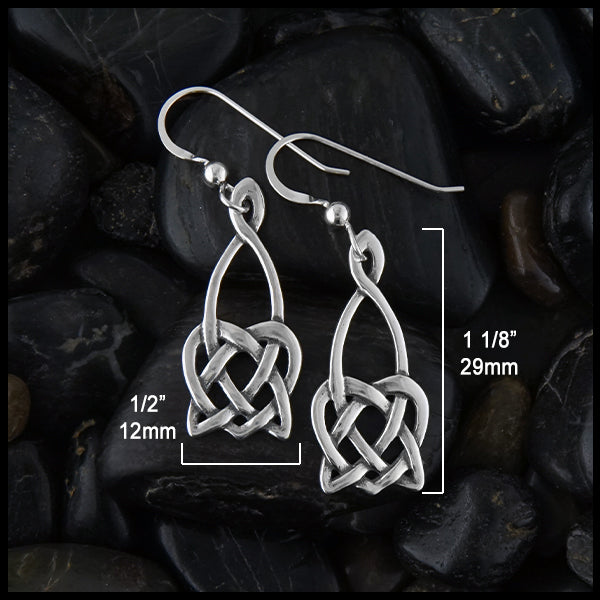 Sterling Silver Open Heart Knot drop earrings and pendant set.