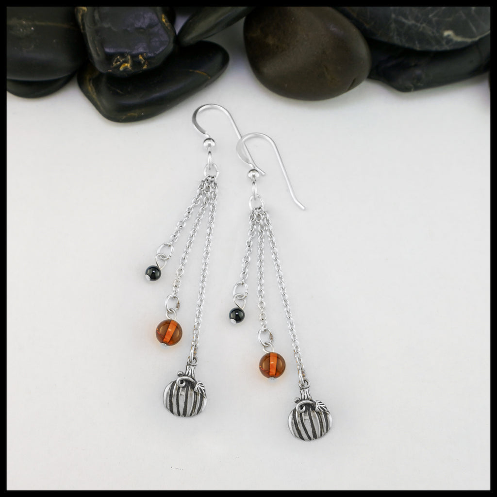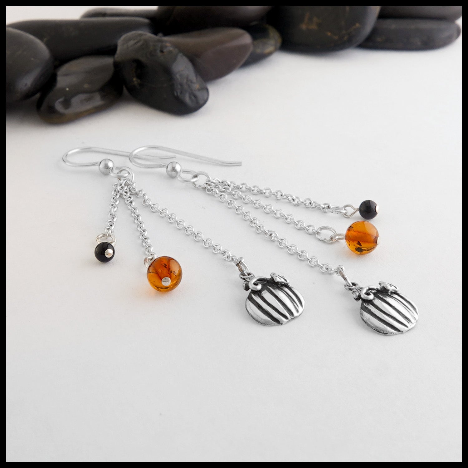These limited edition charm drop earrings are perfect for the autumn weather. These earrings are decorated with a dangling maple leaf, a jasper bead, and a starlight knot charm.