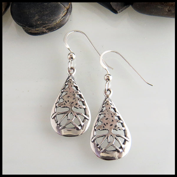 Sterling Silver Christmas Tree Drop Earrings with a never-ending Celtic Knot for the branches. View Matching...