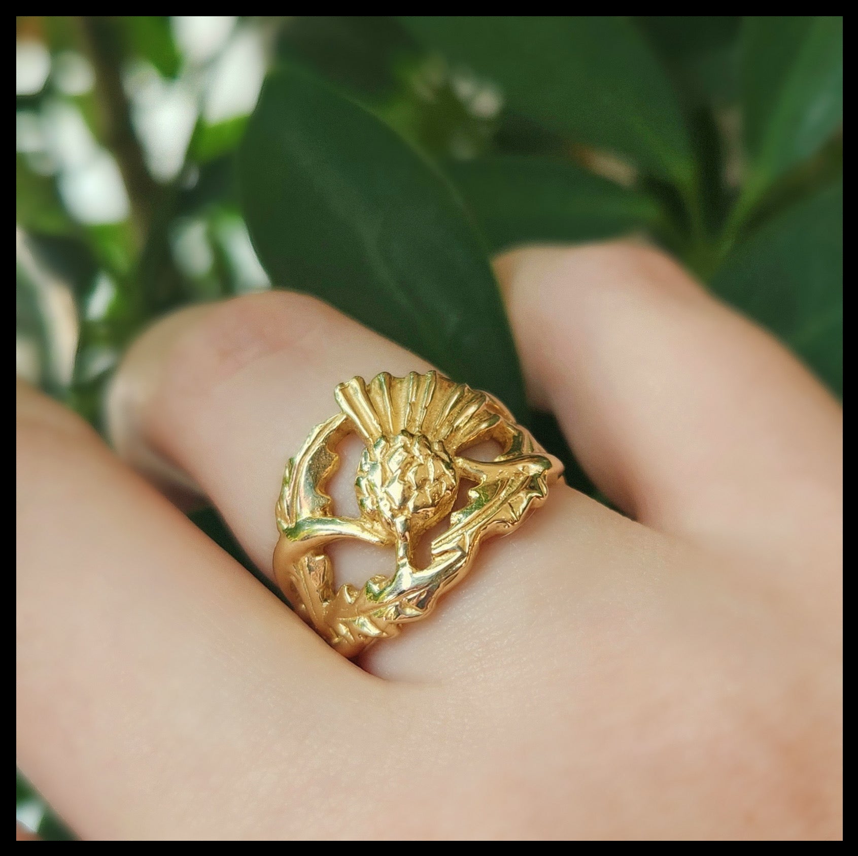 This Thistle Ring in 14K Gold is the perfect ring to show off your Scottish side.