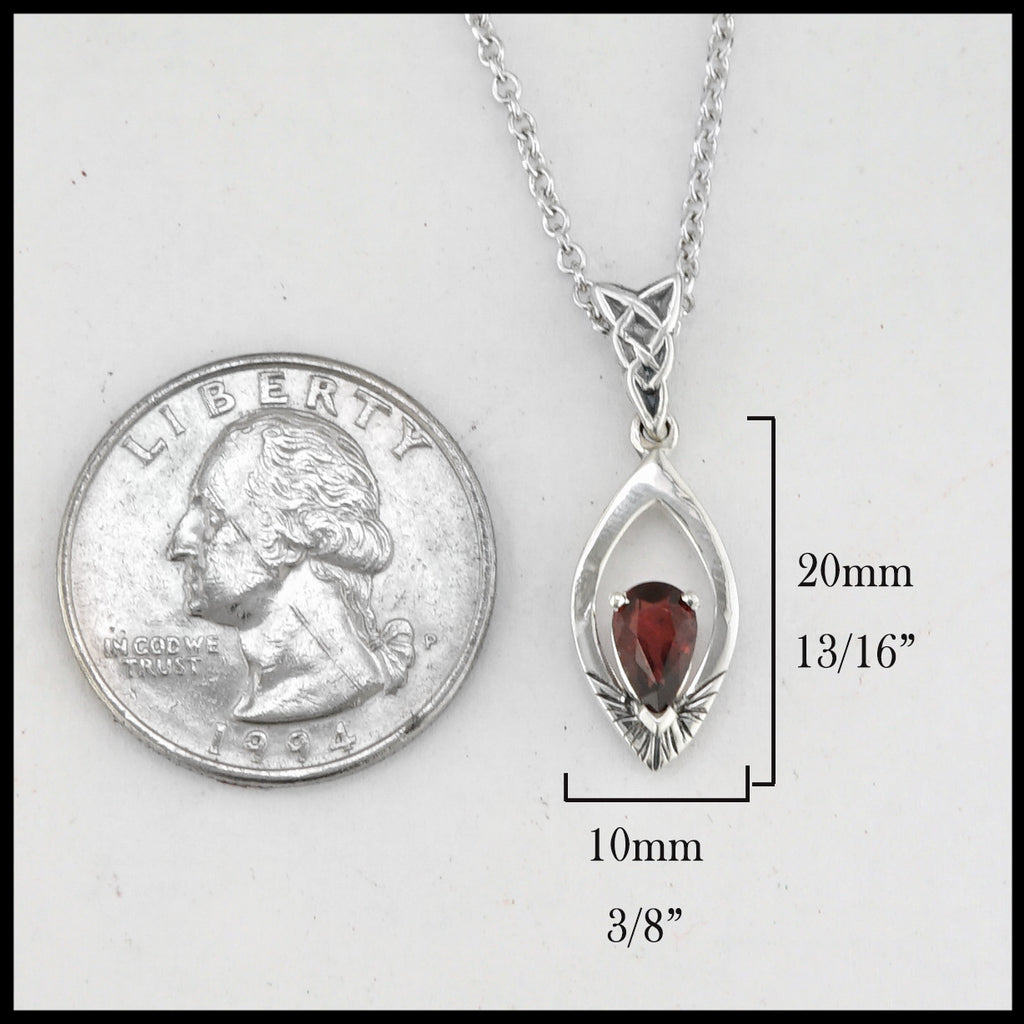 Sterling Silver frame pendant set with a teardrop shaped Spinel. This pendant comes with an 18" sterling silver chain.