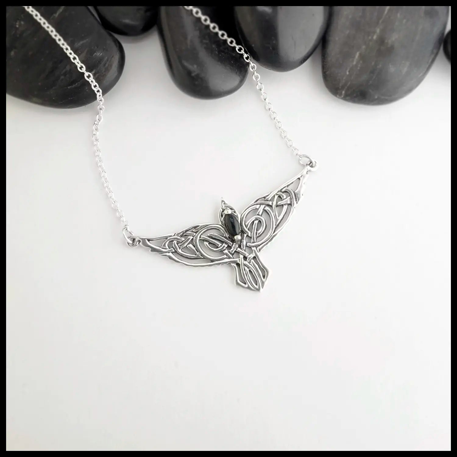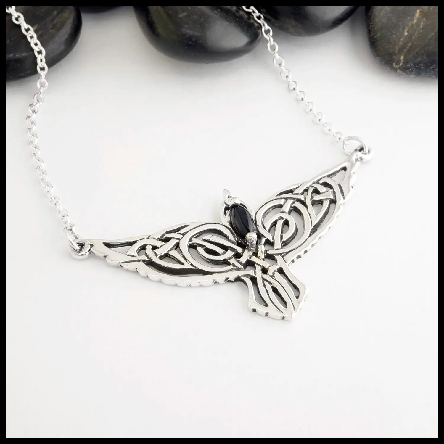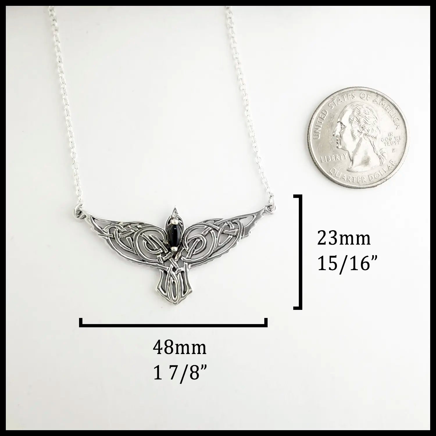 For an added touch of mysticism and mystery, our classic Celtic Raven now features a marquise cut Onyx! This pendant has an attached 16" cable chain, for a total chain length of 18".
