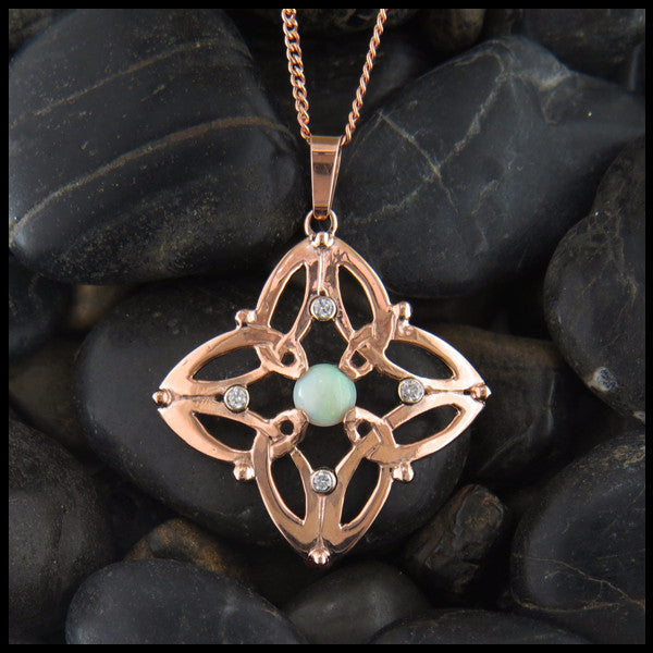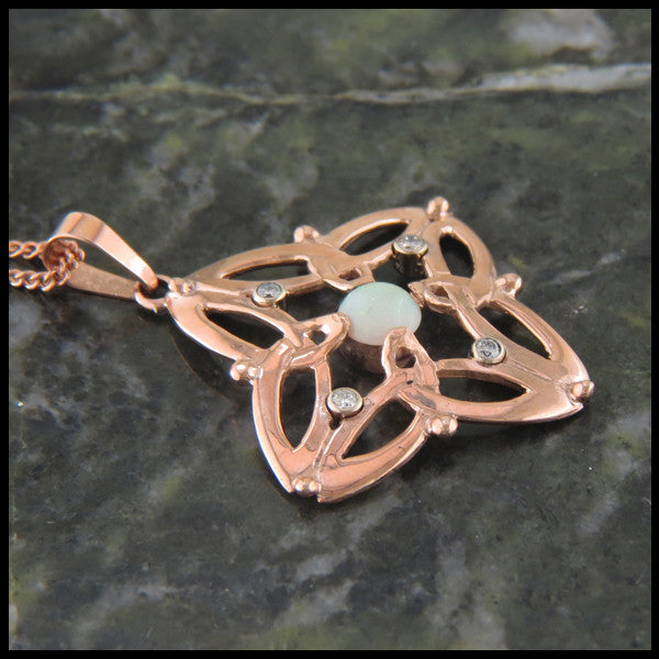 14K Rose Gold Pendant set with a 6mm Opal in the center, accented with 4 - 2mm Diamonds.