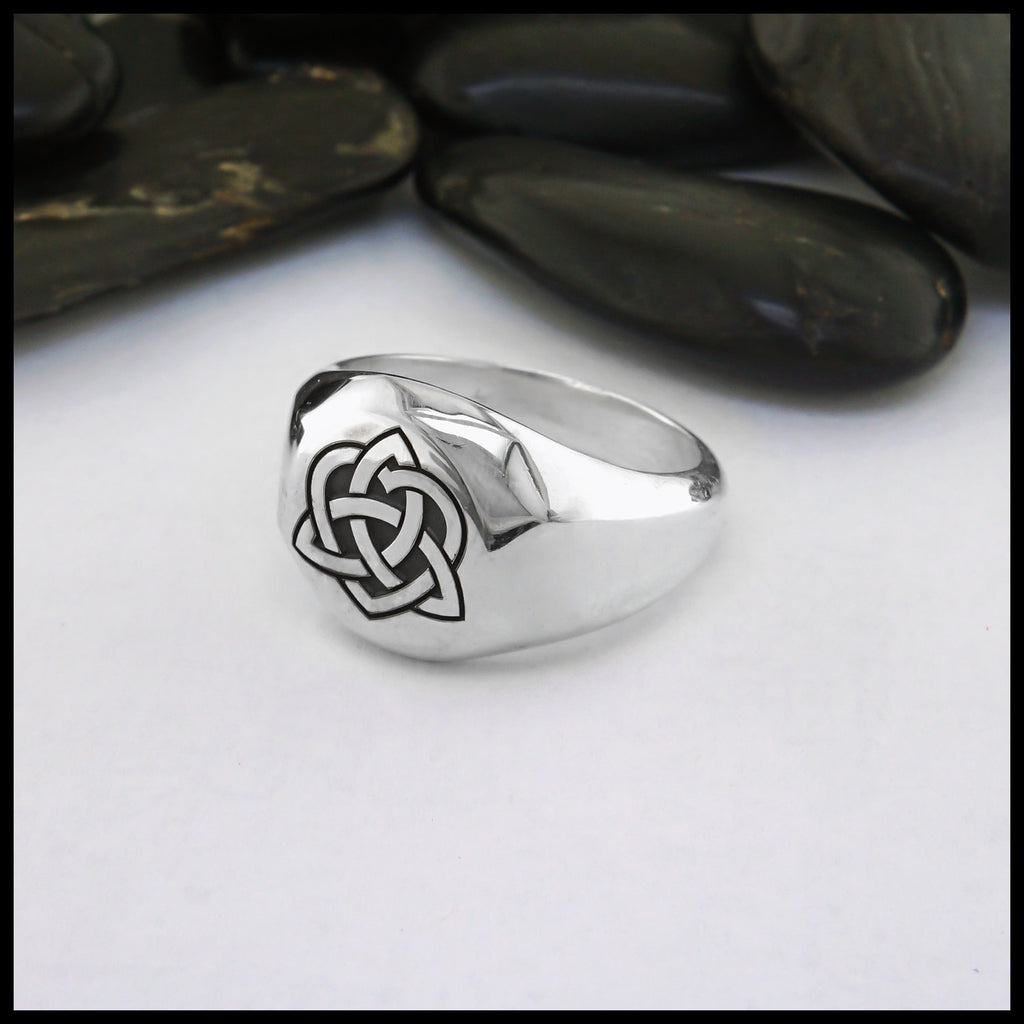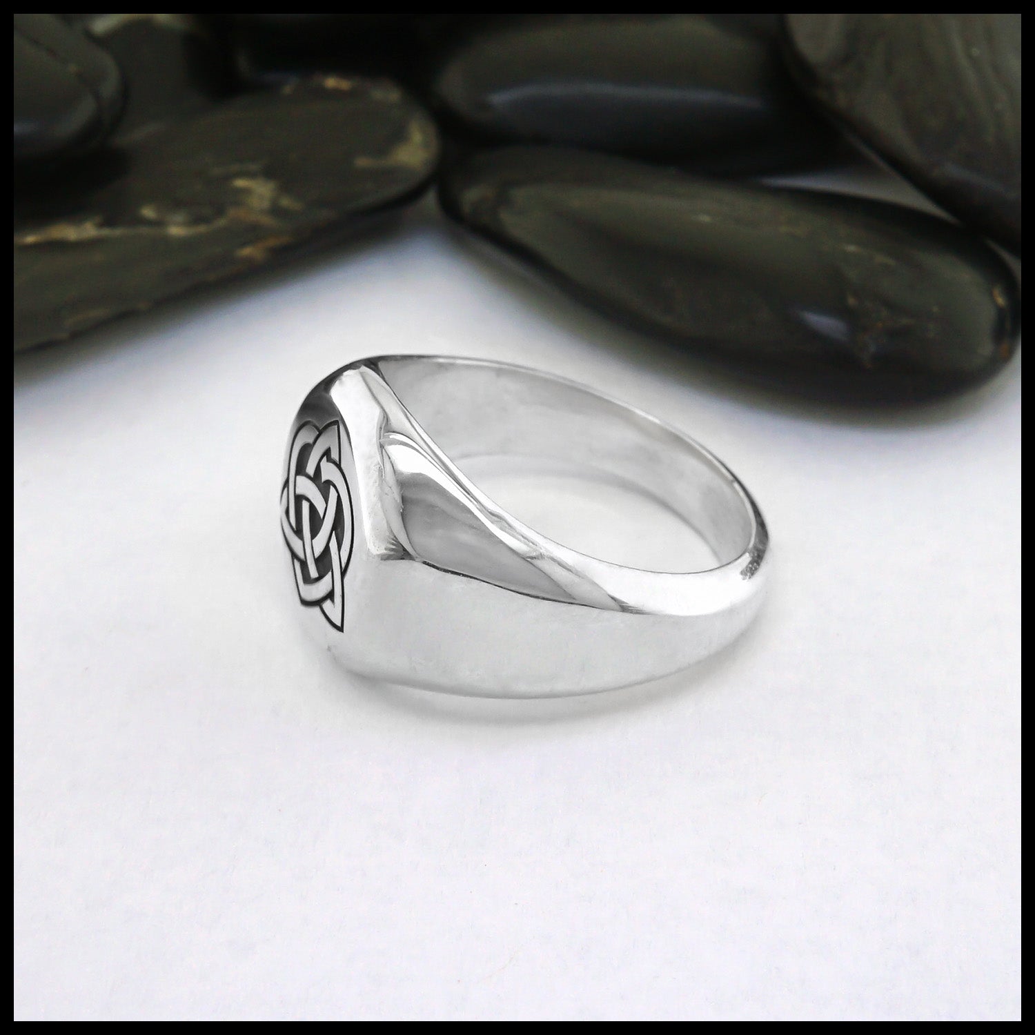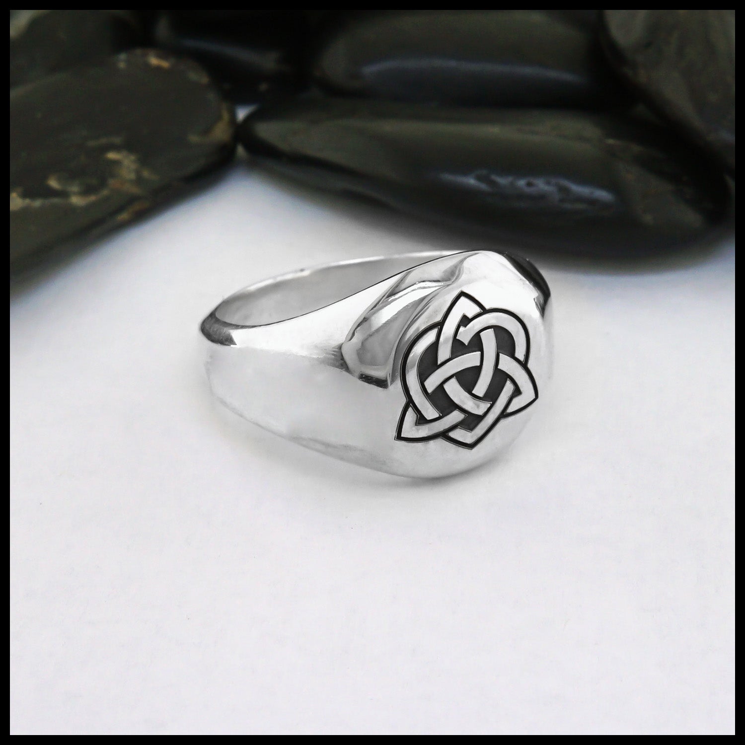 Sterling Silver Signet ring with a Celtic Trinity Knot Heart design.